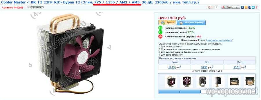 Также модель сокета часто упоминается в описаниях кулеров для того, чтобы пояснить, на какой именно сокет он может быть установлен. Например, в примере ниже из заголовка мы сразу понимаем, с какими сокетами будет работать данный кулер ( Intel 775, 1155 и AMD AM2, AM3): Cooler Master Буран T2 (3пин, 775 / 1155 / AM2 / AM3, 30 дБ, 2200об / мин, тепл.тр.)