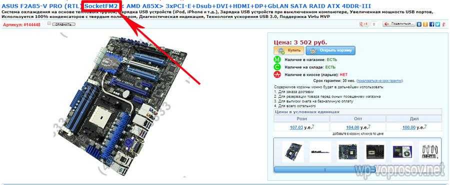 А здесь изображена страница с процессором AMD с сокетом FM 2, что видно также из названия: «ASUS F2A85-V PRO (RTL) SocketFM2 3xPCI-E+Dsub+DVI+HDMI+DP+GbLAN SATA RAID ATX 4DDR-III»