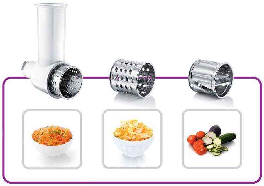 - Электрическая мясорубка с насадками для овощей. Нарезает продукты кружками, пластинами, соломкой, квадратиками разного размера на высокой скорости.