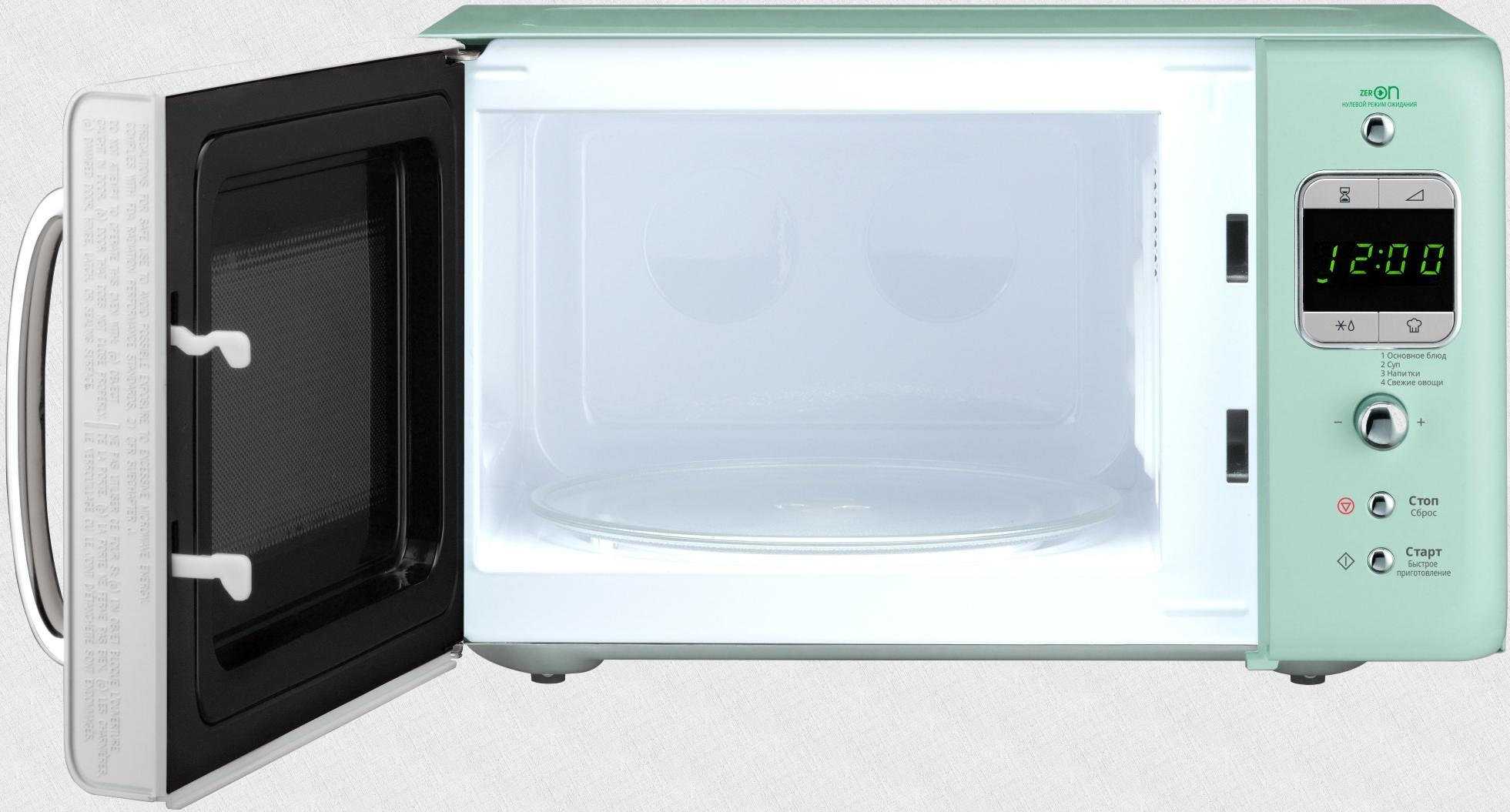 В таких приборах подогрев или приготовление пищи происходит посредством СВЧ-излучения (воздействия сверхвысоких частот). Эти частоты пронизывают продукты питания, оказывая влияние на молекулы воды. Именно колебания водяных молекул приводят к нагреванию пищи. Главным преимуществом СВЧ-печей является то, что сверхвысокие частоты действуют крайне быстро. В отличие от того же приготовления на сковороде или в духовке тут не требуется время на нагрев поверхности. Как следствие — еда готовится буквально за считанные минуты.