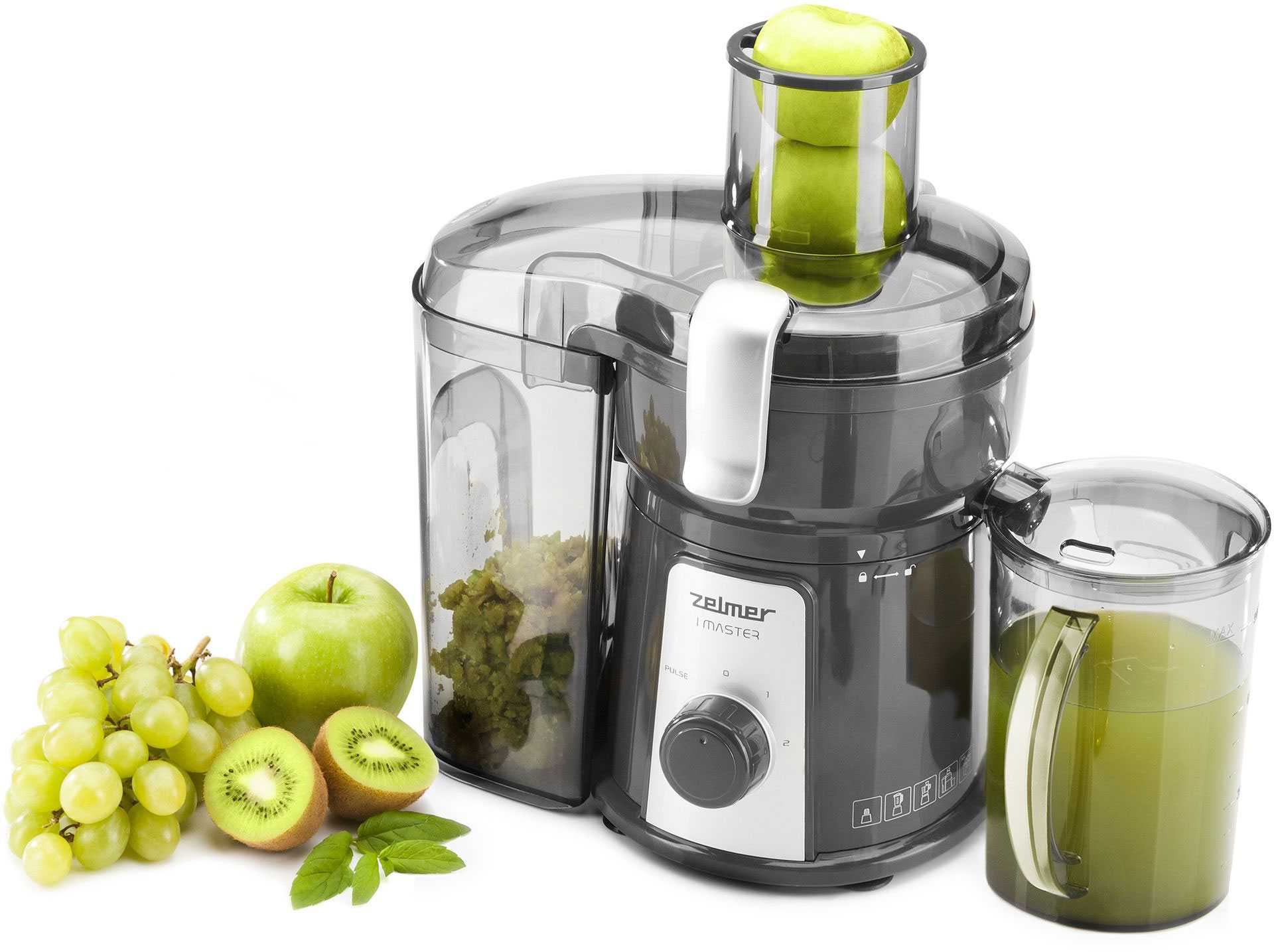 Встроенный сепаратор для пены, позволяет на выходе получать чистый сок. Две скорости дают возможность эффективно перерабатывать твердые и мягкие продукты. Стакан для сока отдельностоящий, поэтому всегда можно использовать любую удобную для вас емкость.