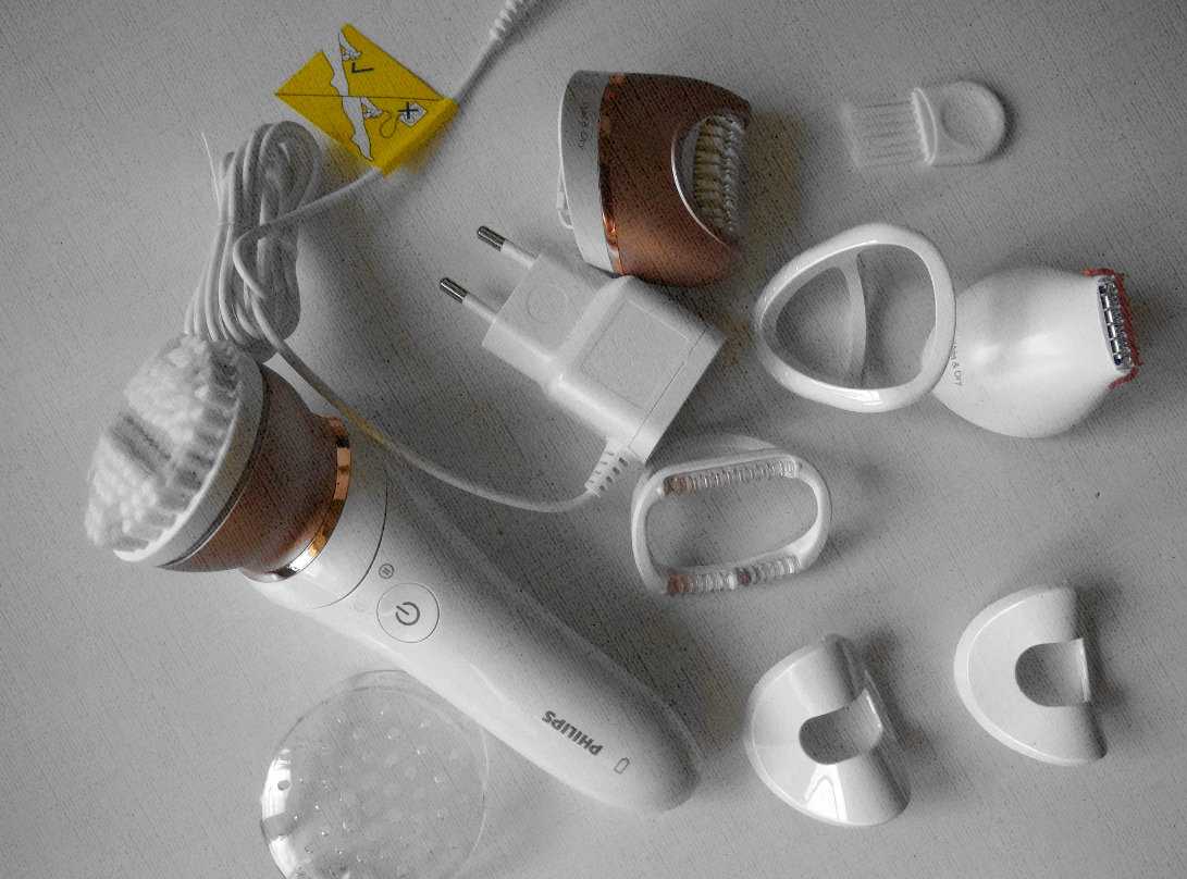 Двухскоростная модель от Филипс с 32 пинцетами представляет более высокую ценовую категорию (стоимость составляет от 11900 рублей). В комплект включено 9 видов насадок, включая насадку для массажа, ухода за стопами и мягкой депиляции чувствительных мест – подмышечных впадин и бикини. В набор входит bikini trimmer, поэтому эпилятором можно удалять волосы целиком, подравнивать и брить.