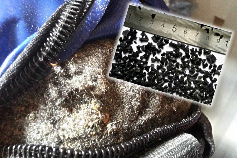- Резиновая стружка. Многие тренеры утверждают, что это самый лучший материал набивки. Он не подвергается гниению и не сваливается в комки. Единственный минус – высокая цена относительно других аналогов.