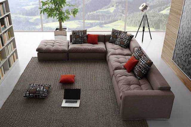 Угловые модели имеют красивый вид и отличаются мобильностью. Поставить их можно как в углу комнаты, так у окна или в центре. Такой диван не будет загромождать пространство и хорошо впишется в интерьер. Нужно только знать, как выбрать угловой диван для гостиной.