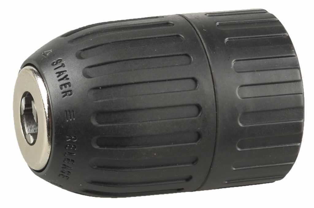 В последние годы появились быстрозажимные патроны. В них зажимная гайка проворачивается рукой. Достоинства и недостатки противоположны ключевому патрону — инструмент меняется за десяток секунд, но силы рук не всегда хватает для прочного зажима, например, на выходе из металла сверло клинит, хвостовик проскальзывает в патроне.