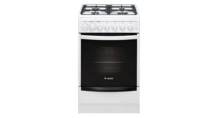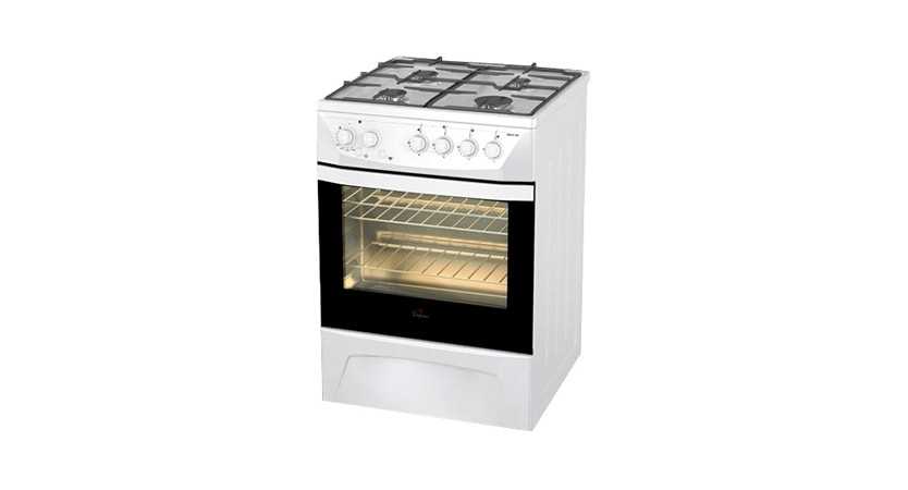 Крайне простое и одновременно надёжное готовящее устройство с газовым духовым шкафом. Варочная панель покрыта высококачественной эмалью, лёгкая решётка из стали позволяет ставить на конфорки ёмкости с небольшим дном.