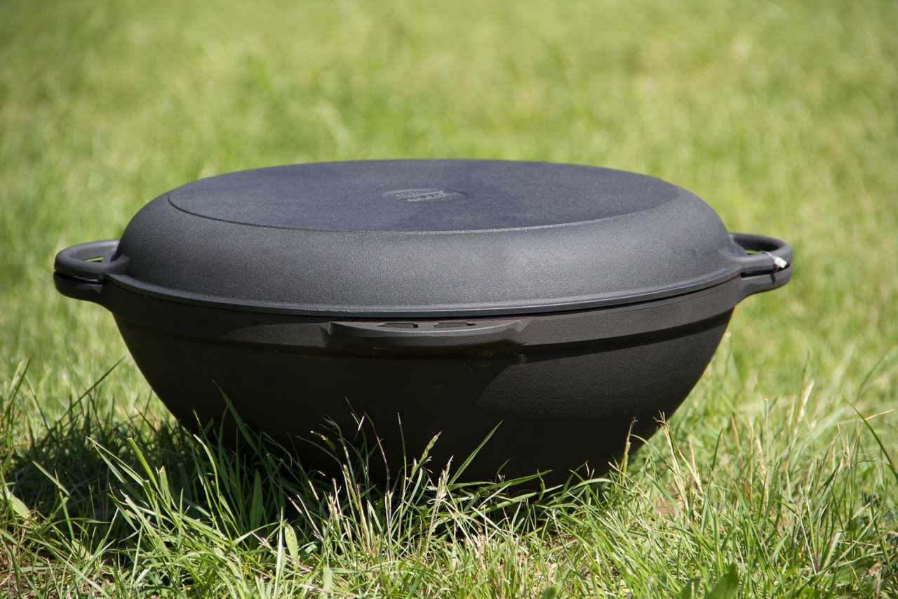 Учтите, что не все алюминиевые и чугунные казаны подходят для приготовления на костре и уличных печах. Ищите совместимость в инструкции производителя, задайте вопрос продавцу. Иначе легко испортить дорогостоящую посуду буквально в первый же день после покупки.