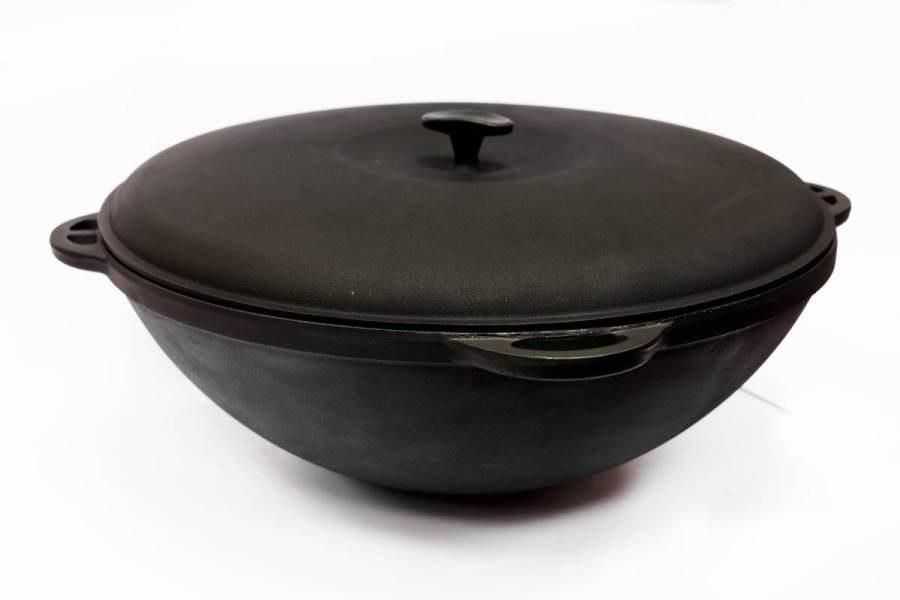 Как правильно выбрать чугунный казан? В первую очередь он должен быть массивным и тяжёлым — металл весит немало, и чем толще стенки, тем выше будет масса изделия.