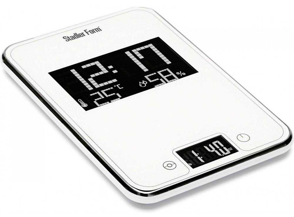 - Stadler Form. Стильные многофункциональные весы для кухни. Они дороже аналогов, но обладают высоким качеством и удобством. Прибор показывает время, имеет таймер, отображает температуру и влажность окружающей среды.