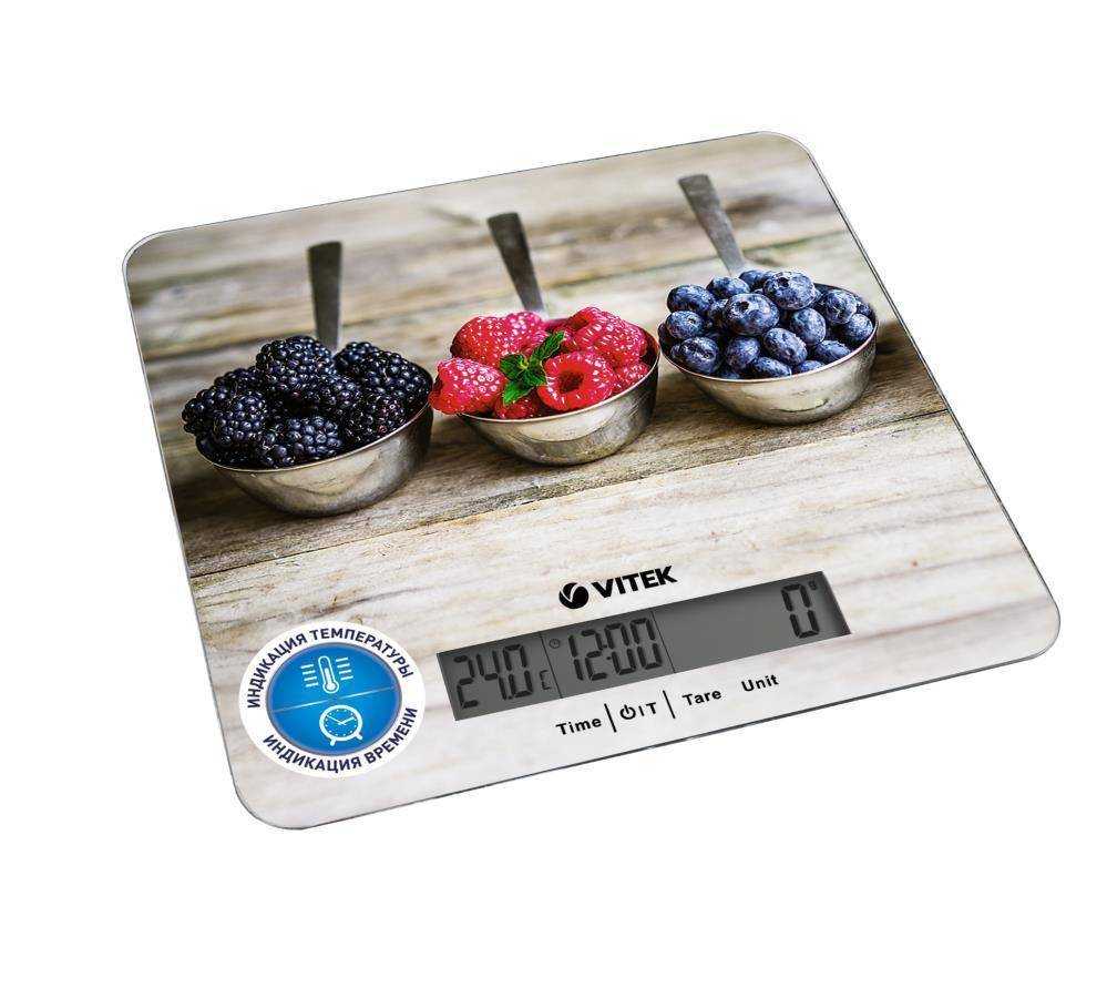 - Vitek. Производитель бюджетного сегмента. Модельный ряд представлен электронными платформенными весами, механического типа с чашей. Имеют индикацию перегруза, отображают уровень заряда батареи, рассчитаны на вес до 3-х кг.