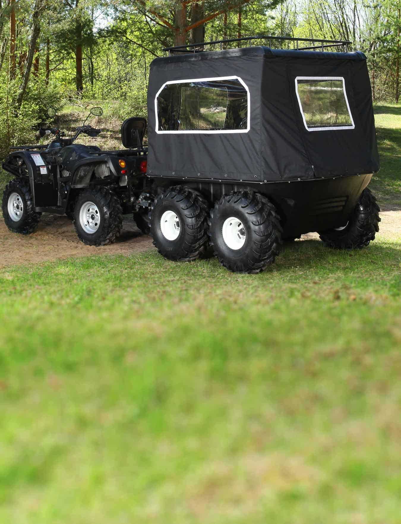 Двигатель не перегревается при длительной езде за счет жидкостной системы охлаждения. Надежность и маневренность обеспечивают широкие внедорожные колеса и механическая трансмиссия.