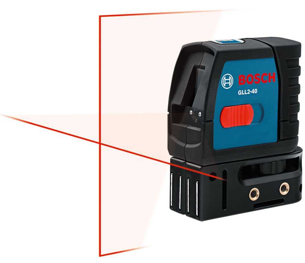 Это один из самых простых «бошевских» нивелиров с двумя перекрестными лазерными лучами. Дальность его невелика – всего 10 метров, поэтому работать с ним можно только в относительно небольших помещениях. Погрешность определения горизонта минимальна и составляет примерно 3 миллиметра на 10 метров. Диапазон самонивелирования стандартный для уровней такого типа: при отклонении более, чем на 4 градуса, проецированные линии начинают медленно мигать, сигнализируя об ошибке. Лазер надежно защищен от попадания воды и пыли, а прорезиненный корпус позволяет не бояться падений прибора.