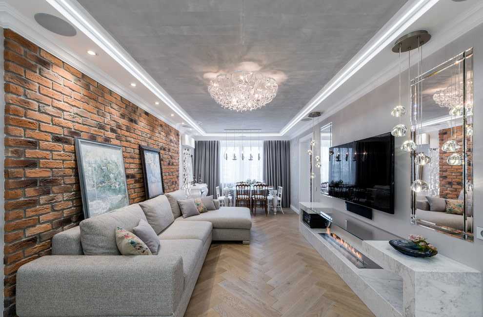 Для комнат, в которых есть деление на функциональные зоны, люстры подбираются для каждой из них отдельно. Обычно гостиная включает в себя: место отдыха, столовую, рабочий стол. Каждая из зон может быть дополнена другими видами осветительного оборудования. Разделение делается в больших комнатах.