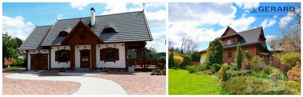 Небольшие дачи, садовые и гостевые домики, хозяйственные постройки имеют обычно простую форму крыши — двухскатные и односкатные. Для таких крыш можно выбрать металлочерепицу толщиной 0.4 мм. Конечно, монтировать ее сложнее — иногда приходится буквально «натягивать» отдельные листы друг на друга, но цена такого профиля существенно ниже. А так как форма у кровли простая, то монтаж можно провести аккуратно. Да и в обслуживании простые скатные крыши намного проще.