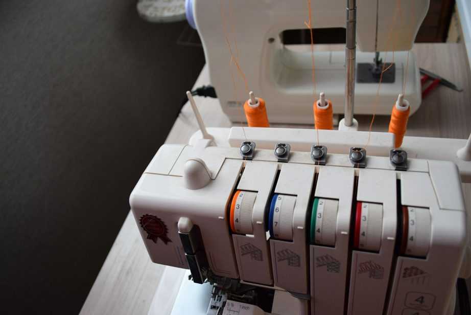 Оверлоки могут отличаться количеством нитей, использующихся во время работы. Стандартные модели вмещают от 2 до 5 катушек – именно от их числа зависит разнообразие, качество и надежность стежков. Краеобметочные машины применяются для обработки трикотажа, атласа, шелка, хлопка, шерстяных тканей. Некоторые модели умеют обметывать толстые кромки ковров и паласов.