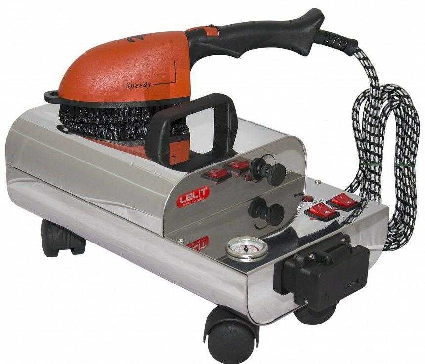 Профессиональный парогенератор, комплектуется утюгом. Максимум давления пара 5.5 бар. Объем чаши для воды 2 литра. Непрерывно работает 3 ч. Насадки: точечное сопло для уборки пола, угловая округлая щетка для мытья окон, стяжка для стекол.