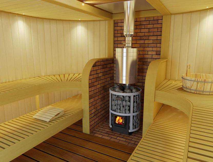 При отсутствии газификации и ограниченных параметрах проводки либо нестабильной подаче напряжения дровяная печь — единственный вариант. Топливо можно заготавливать самостоятельно, закупать, плюс экологический аспект и широкая ассортиментная линейка. Неудобства состоят в чистке дымохода и зольника, долгом прогреве парной и необходимости поддержания нужной температуры посредством подбрасывания дров в топку.