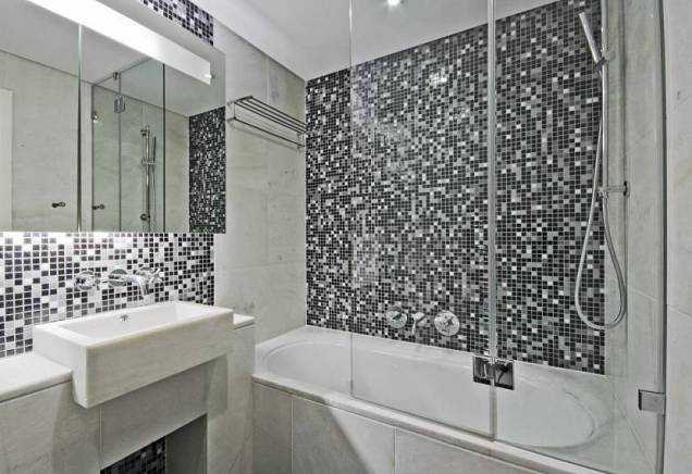 Пиксельное оформление настолько изящно и популярно, что встречается практически в каждом доме. Покрытие считается довольно сложным, но создает невероятный эффект от обстановки. Черно-белую пиксельную плитку можно комбинировать со светлым кафелем, выполненным под мрамор.