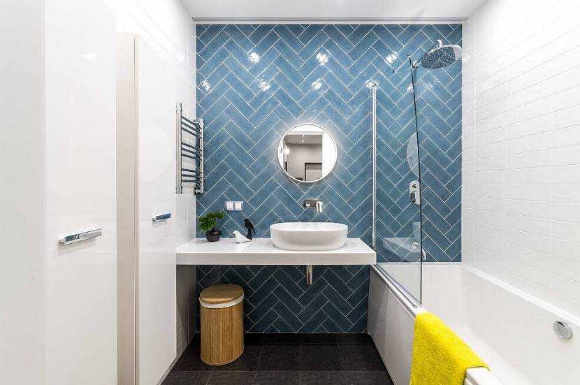 Плитка прямоугольной формы в интерьере ванной.