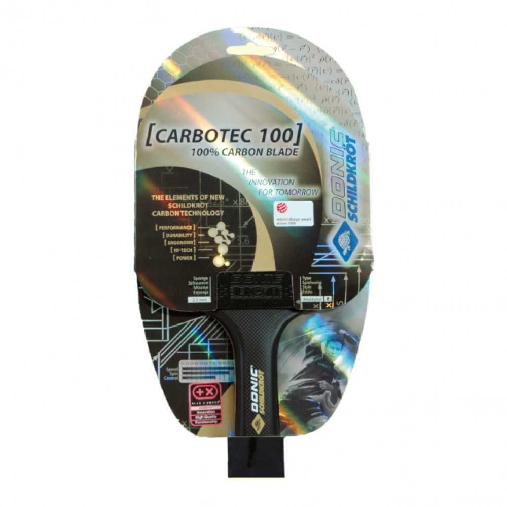 Брендовая модель Donic Carbotech 100 изготовлена из нитей графита и резины. Она имеет гладкую накладку и мегавысокие параметры упругости. Ее выбирают за прочность, отменное качество, стильный дизайн. Для новичков инвентарь не подойдет. Покупатели отмечают отличную скорость ракетки и превосходный контроль. Еще одна важная особенность – легкость. Вес предмета всего 185 г.