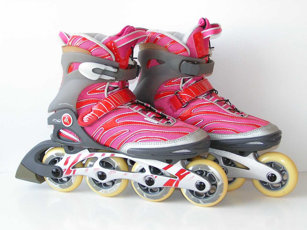 Колеса из ПВХ с индексом жесткости 82А сотрутся нескоро. Подшипники ABEC-7 обеспечивают плавный ход и очень быстрый разгон до хороших скоростей. Надежная фиксация ролика на ноге обеспечивается благодаря классической шнуровке, пяточному ремню и клипсе-застежке на голени, хотя ее качество могло быть и получше.