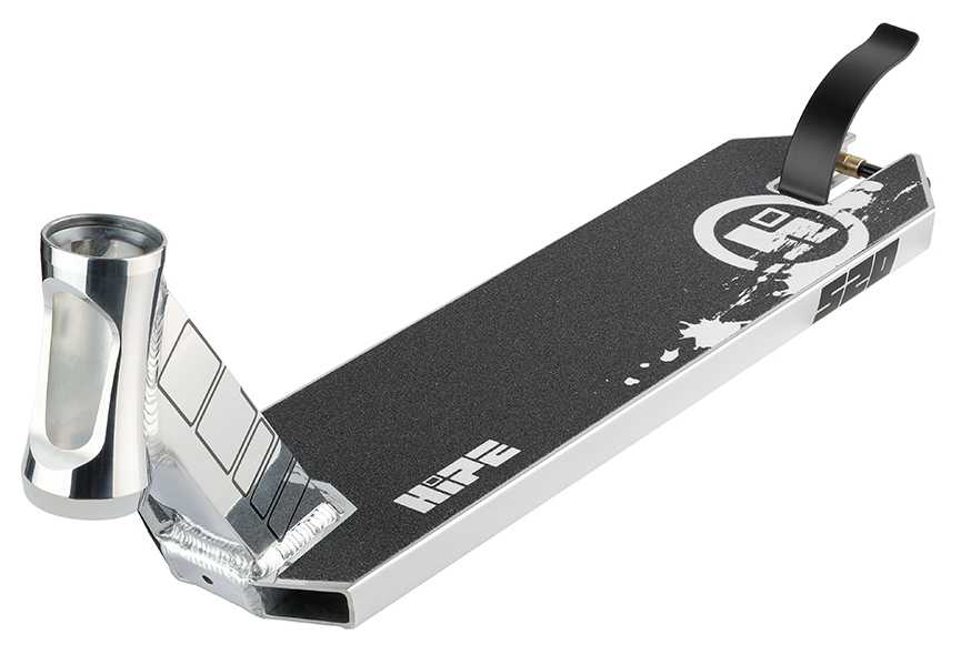 Платформа может быть жестко закреплена на раме, обеспечивая максимальную управляемость самоката во время выполнения финтов и трюков. Встречаются и деки на гибкой сцепке, как в кикборде. Эти служат для облегчения управления самокатом.