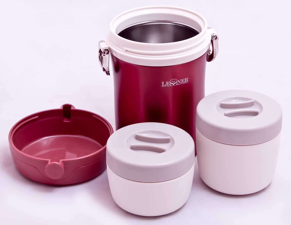 Главным отличием изделий для еды является широкое горлышко и небольшой объем. В него помещается только одна порция. Выпускаются оригинальные судковые термосы, состоящие из трех пластиковых или металлических контейнеров. Конечно, конструкция отличается своими небольшими габаритами, однако, наличие отдельных отсеков позволяет хранить разные блюда.