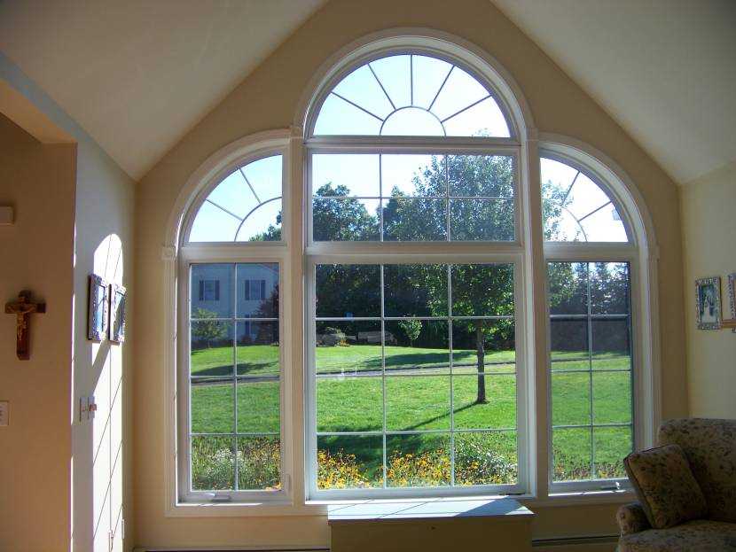 Арочные оконные рамы — комбинация прямоугольной конструкции и половины круга. Стоимость таких окон не очень сильно отличается от прямоугольных вариантов и поэтому их все чаще можно увидеть на фасадах домов частной застройки, а также в храмах и общественных зданиях.