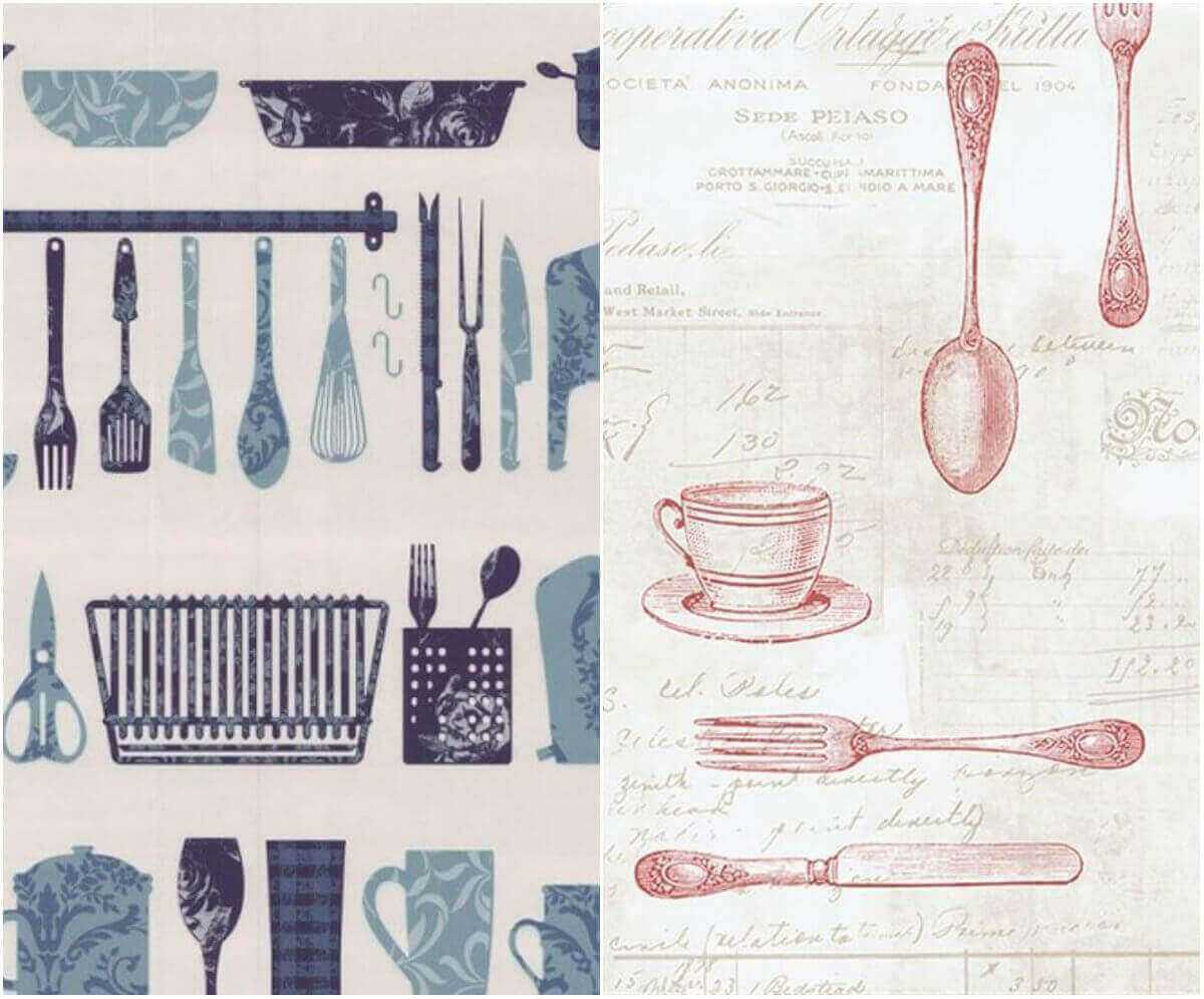 - При оформлении кухни можно сочетать два вида обоев (например, супермоющиеся «кухонные» обои в зоне приготовления пищи и обои из твёрдого винила в обеденной зоне). Таким образом получится и сэкономить на материалах, и снизить нагрузку на более дорогое покрытие.