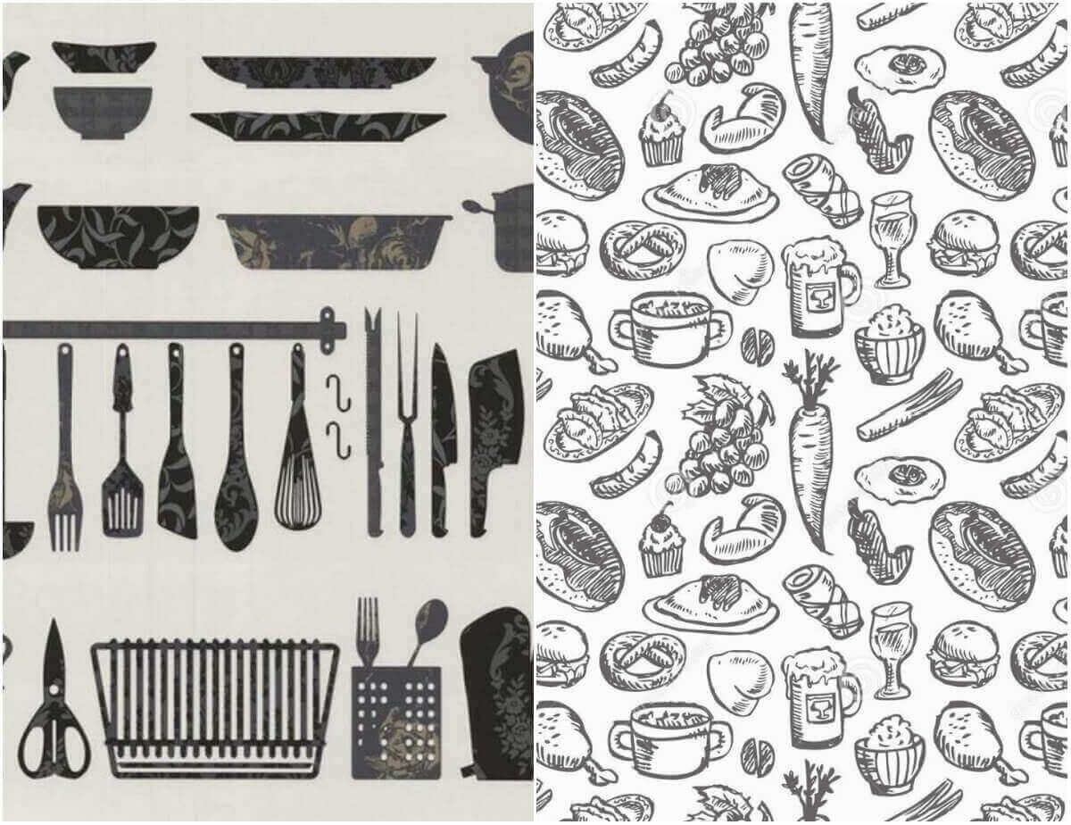 В современных интерьерах пользуется популярностью монохромный дизайн. Поэтому черно-белые и серые узорчатые покрытия тоже можно гармонично вписать в интерьер в белым гарнитуром. Они могут играть роль акцента или использоваться на всех стенах для создания успокаивающего фона.