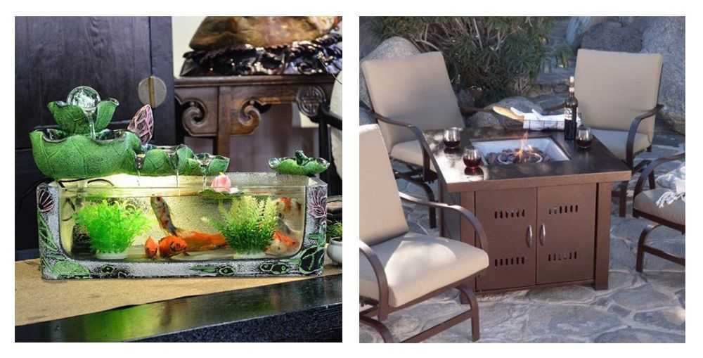- небольшой фонтан или большой аквариум с золотыми рыбками;