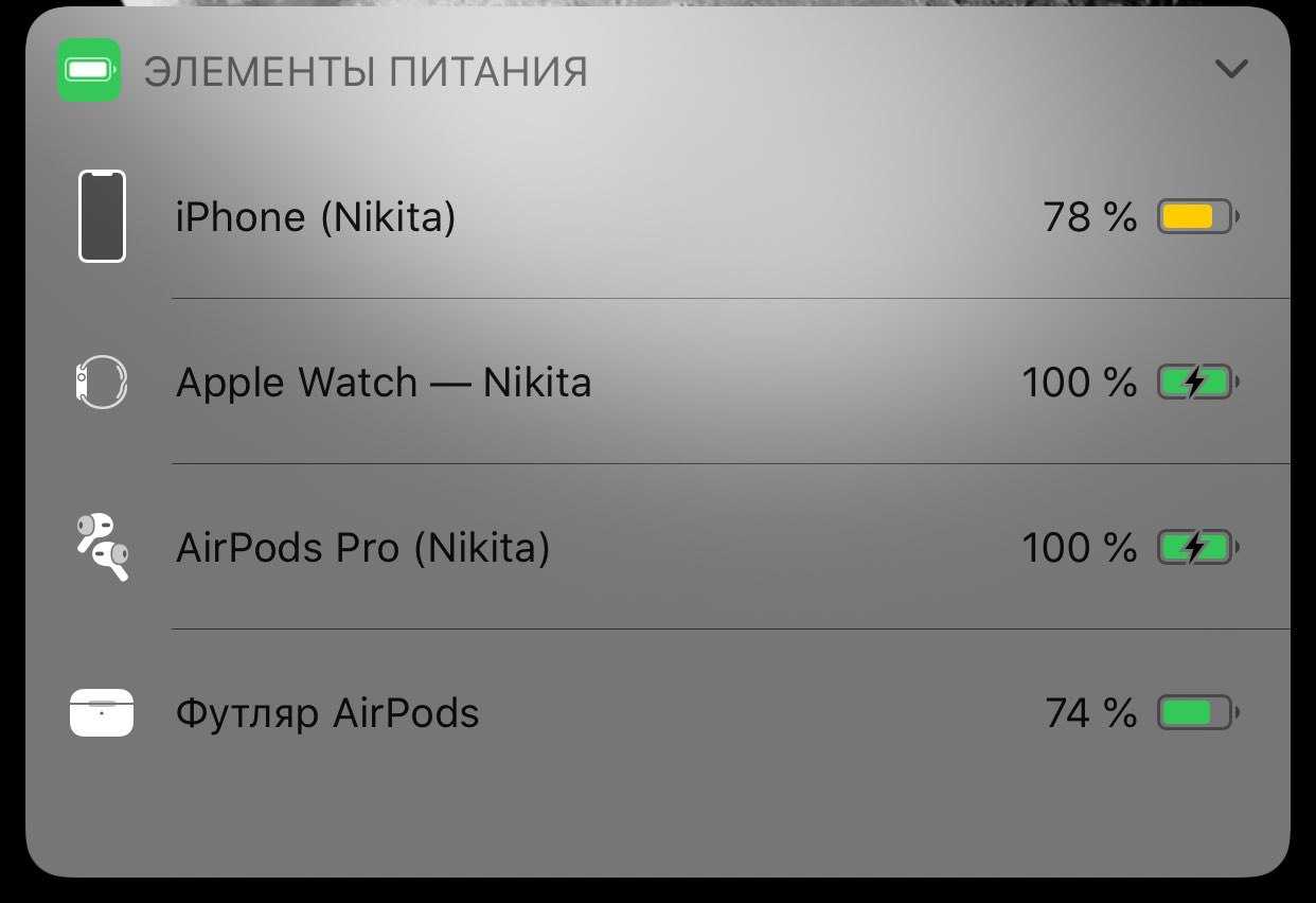 У меня есть плейлист на 6 часов, с которым я и решил протестировать наушники сегодня утром. Просто положил их, включил шумоподавление, поставил на воспроизведение и оставил так, время от времени проверяя уровень заряда по виджету Элементы питания в iPhone.