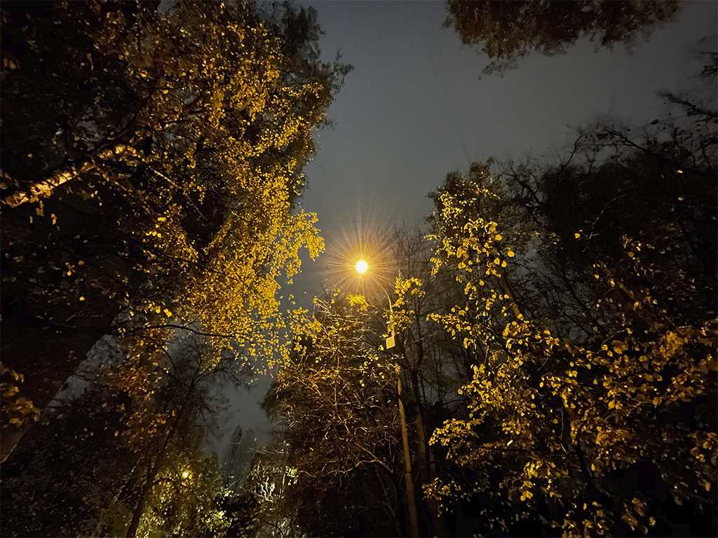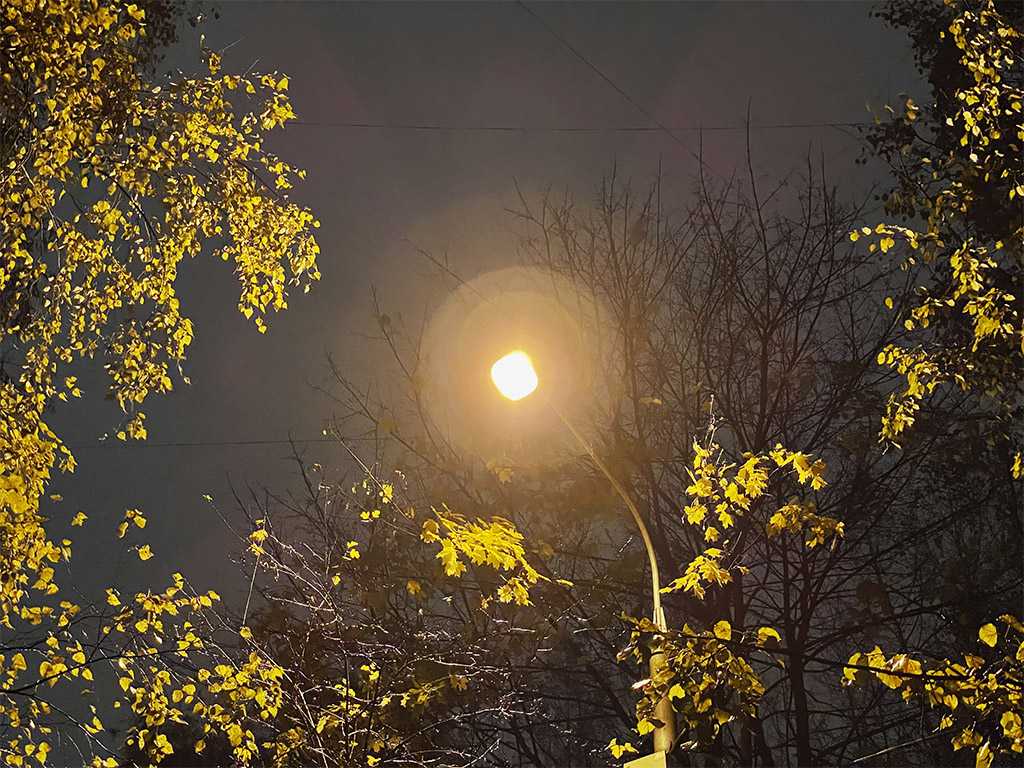 Фото на ширик: смартфон захватил свет от фонаря справа вдалеке.