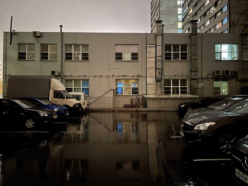 В Москве трудно найти неосвещённое место, но мне удалось. Переулок, заставленный машинами без единого фонаря, освещаемый только светом из окон окружающих домов. На фото кажется, что на улице светло, но по правде, я делал этот снимок буквально наугад, потому что ничего не видел.