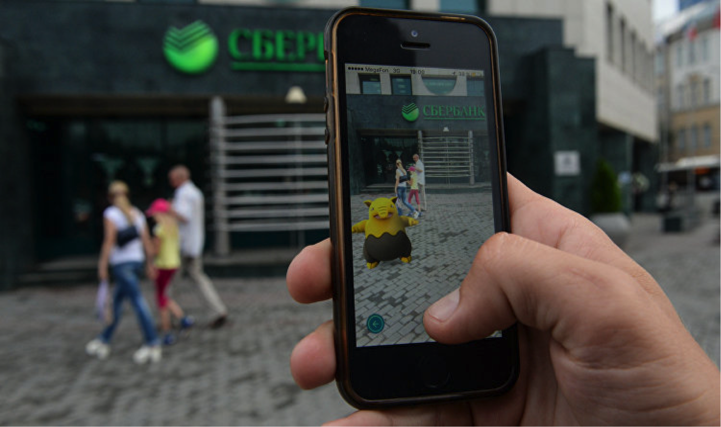 Одним из первопроходцев оказался «Сбербанк», который решил воспользоваться волной ажиотажа вокруг Pokemon Go. В 2016 году банк презентовал проект под названием «Сбербанк Гоу». По словам Алексея Забродина, бренд-менеджера банка, в проект было вложено 3 миллиона рублей, сообщал E-xecutive.ru. Руководство ставило перед собой цель продвигать среди молодежи программу лояльности «Спасибо», «Страхование жизни» и другие продукты. Рядом с отделениями банк разместил ловушки для покемонов, а также создал карту покестопов. Для использования образа покемонов «Сбербанк» заключил договоренность с Nintendo.