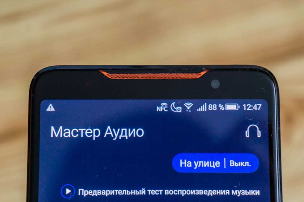 ASUS ROG Phone получил фронтальные стереодинамики, которые очень хорошо звучат по всем параметрам. У них отличный запас по громкости и к качеству вообще нет вопросов: играют отменно при прослушивании музыки, просмотре видео и, конечно же, в играх ведут себя как надо. Разговорный динамик, кстати, тоже отличный.