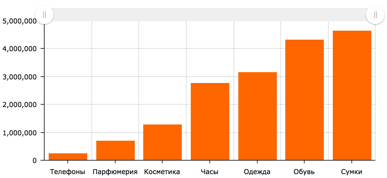 График: популярность поддельных аккаунтов по категориям товаров, График: amcharts.com