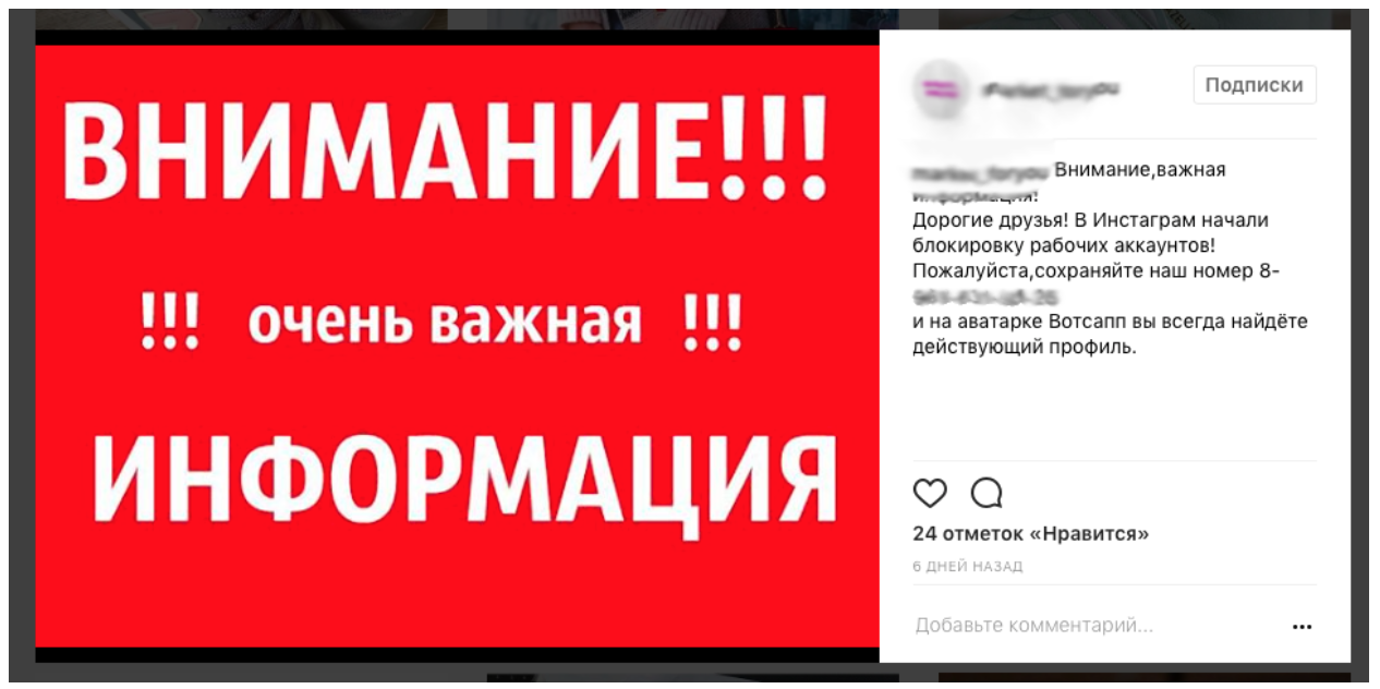 Кстати, его администраторы даже заботливо предупреждает подписчиков о том, что «в «Инстаграм» начали блокировку рабочих аккаунтов».