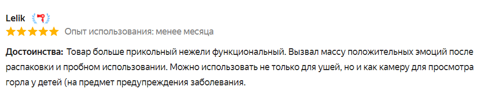 Другой пользователь отмечает удобство использования такой ушной палочки и даже говорит о возможности ее использования с несколько другими целями: