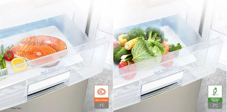 - некоторые модели оснащены фрэш-зоной, где хранятся овощи и фрукты при температуре 0 градусов;
