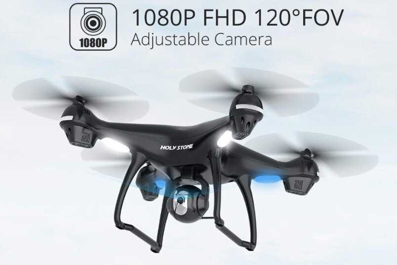 Спереди у Holy Stone HS100 GPS оптимизированная Wi-Fi камера 1080p с углом обзора 120 градусов и регулируемым углом 90 градусов. Камера предназначена для новичков в аэрофотосъемке. Она делает качественные кадры, также можно экспериментировать со снимками с разных точек обзора. Установлен внушительный емкий аккумулятор на 2500 mAh. Время полета достаточное для полноценной съёмки, до 15 минут на полностью заряженном дроне. В комплекте идёт карта памяти формата MicroSD на 8 ГБ. Управлять аппаратом можно на расстоянии до 500 метров.