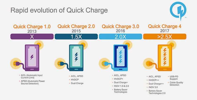 Так, Quick Charge четвертого поколения за 15-20 минут может заряжать половину емкости аккумулятора 3000 мАч.