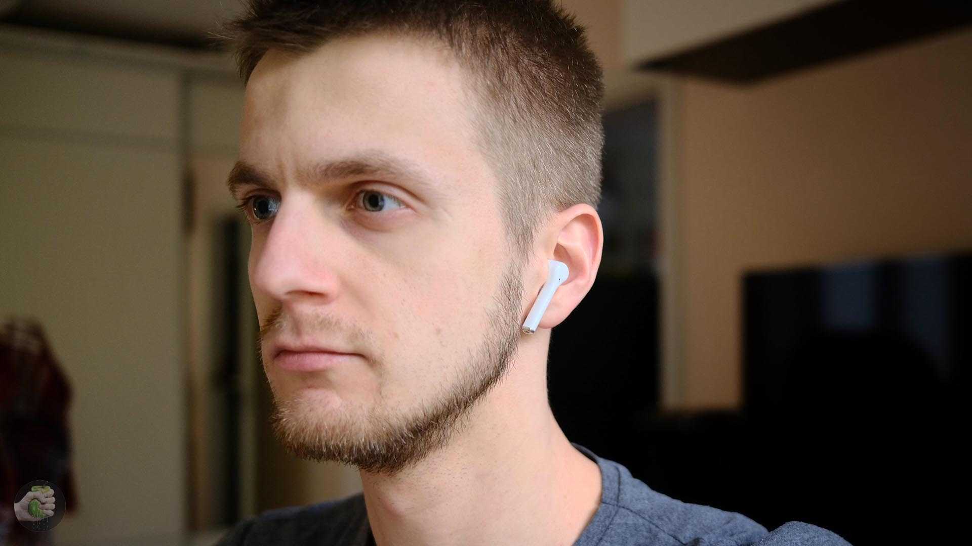 Смотрятся наушники в ушах хорошо, если вам по нраву такой форм-фактор. «Ножка» слегка больше, чем у AirPods, но лично я в этом никаких проблем не вижу.