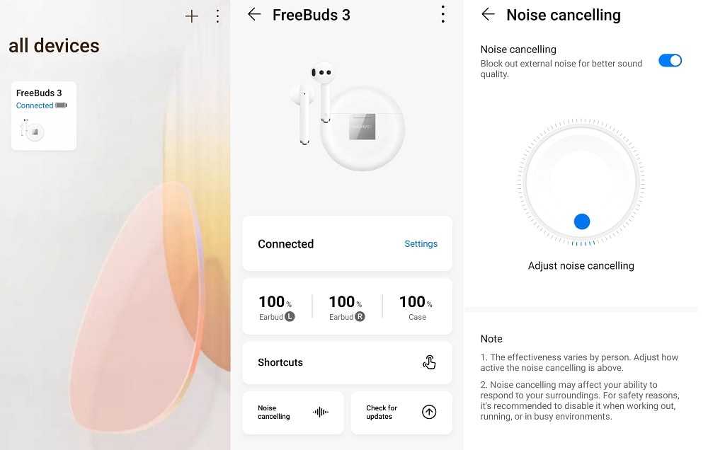Можно с уверенностью сказать: ANC в Huawei FreeBuds 3 отрабатывает хорошо, тем более, если брать в учет тип наушников.