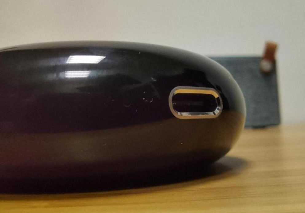 В нижней части находится разъем USB-C и индикатор зарядки устройства, он также дублируется и под крышкой. Для подключения и настройки синхронизации наушников и смартфона на боку футляра присутствует небольшая круглая кнопка.