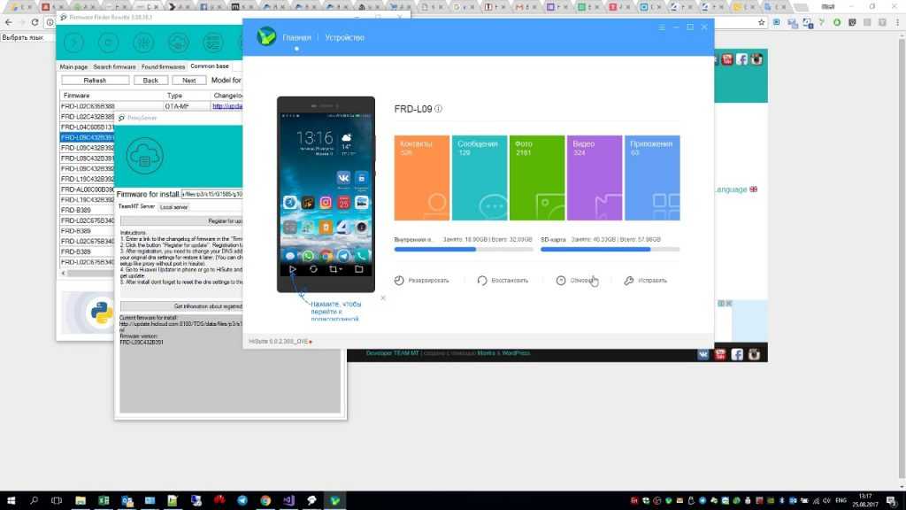 HiSuite – это известная программа для прошивки телефона Huawei. Её необходимо скачать на компьютер, установить и обновить до последней версии. Ход действий следующий: