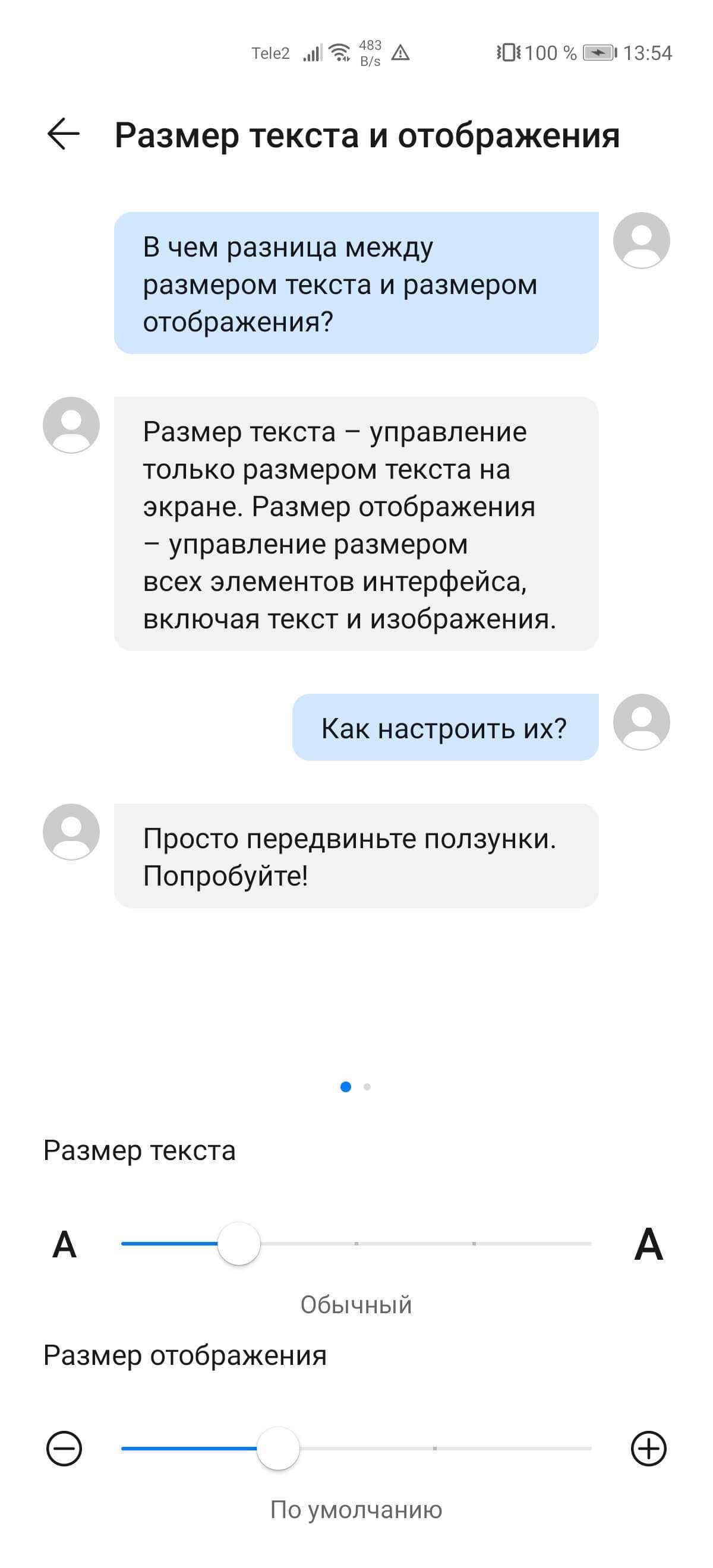 Параметр «Размер текста и отображение» производит тонкую настройку того, как будет выглядеть текст на экране смартфона. Можно сделать крупный шрифт, но широкий блок расположения букв, либо уменьшить текст, но вытянуть его вниз на максимально возможную длину.