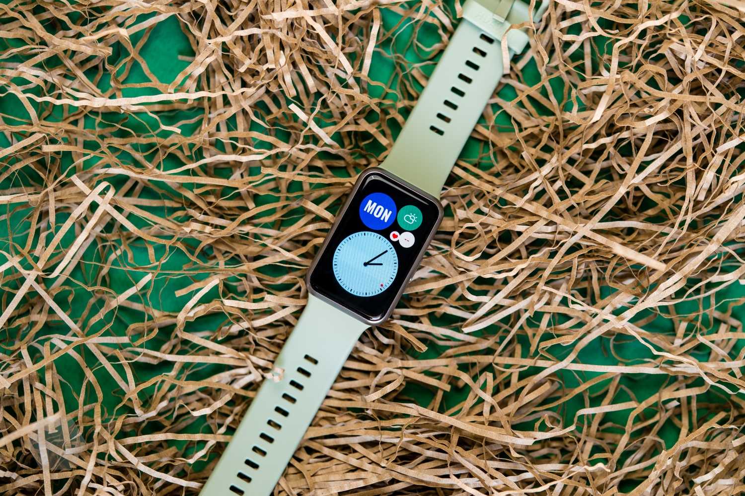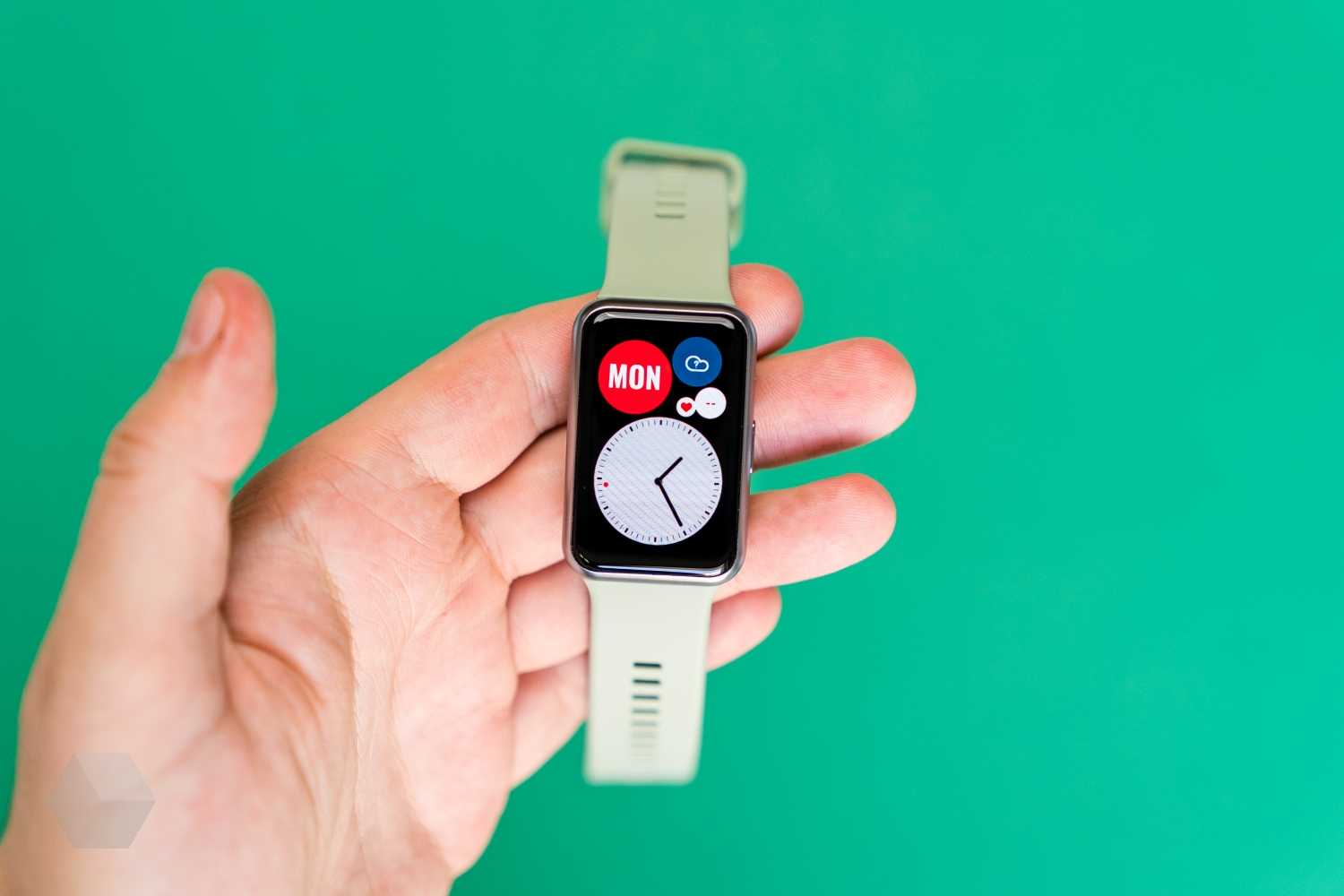 Huawei Watch Fit сильно напоминают «яблочные» часы. Нет, это не копия, ведь корпус здесь слегка вытянут и немного изогнут. Тут нет алюминия: пластиковая окантовка аккуратно повторяет стальную поверхность, что заметно не только по светло-серому цвету, но и по тактильным ощущениям.