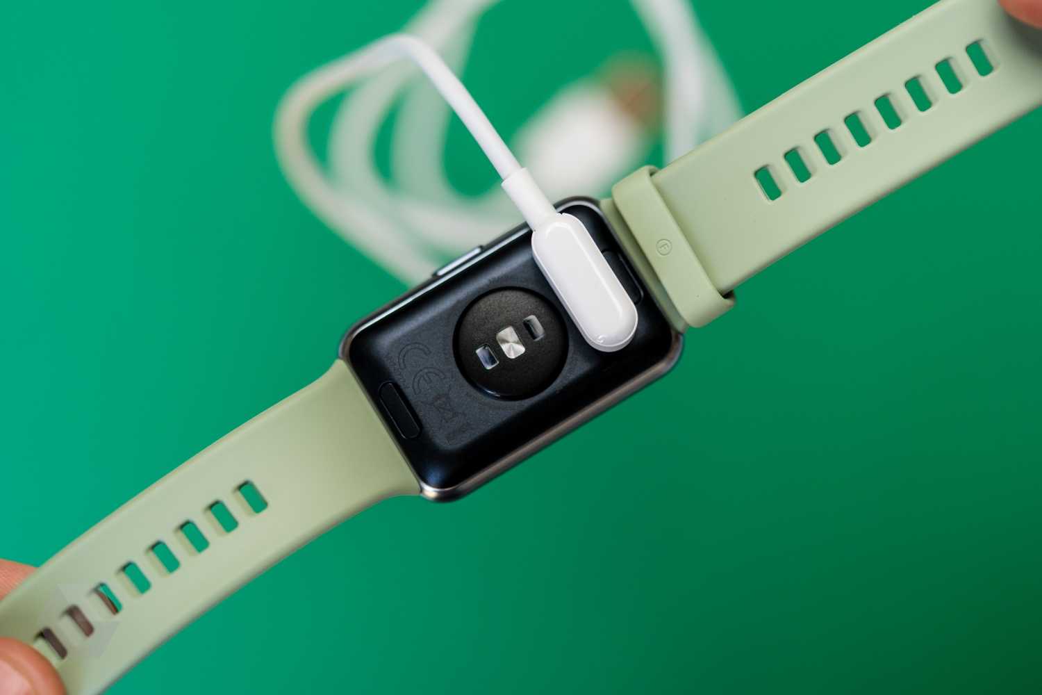 Заряжаются часы с помощью USB-провода, который оснащён специальным магнитным держателем. На 50% аккумулятор зарядится за 20 минут, а до 100% — примерно за 45 минут.