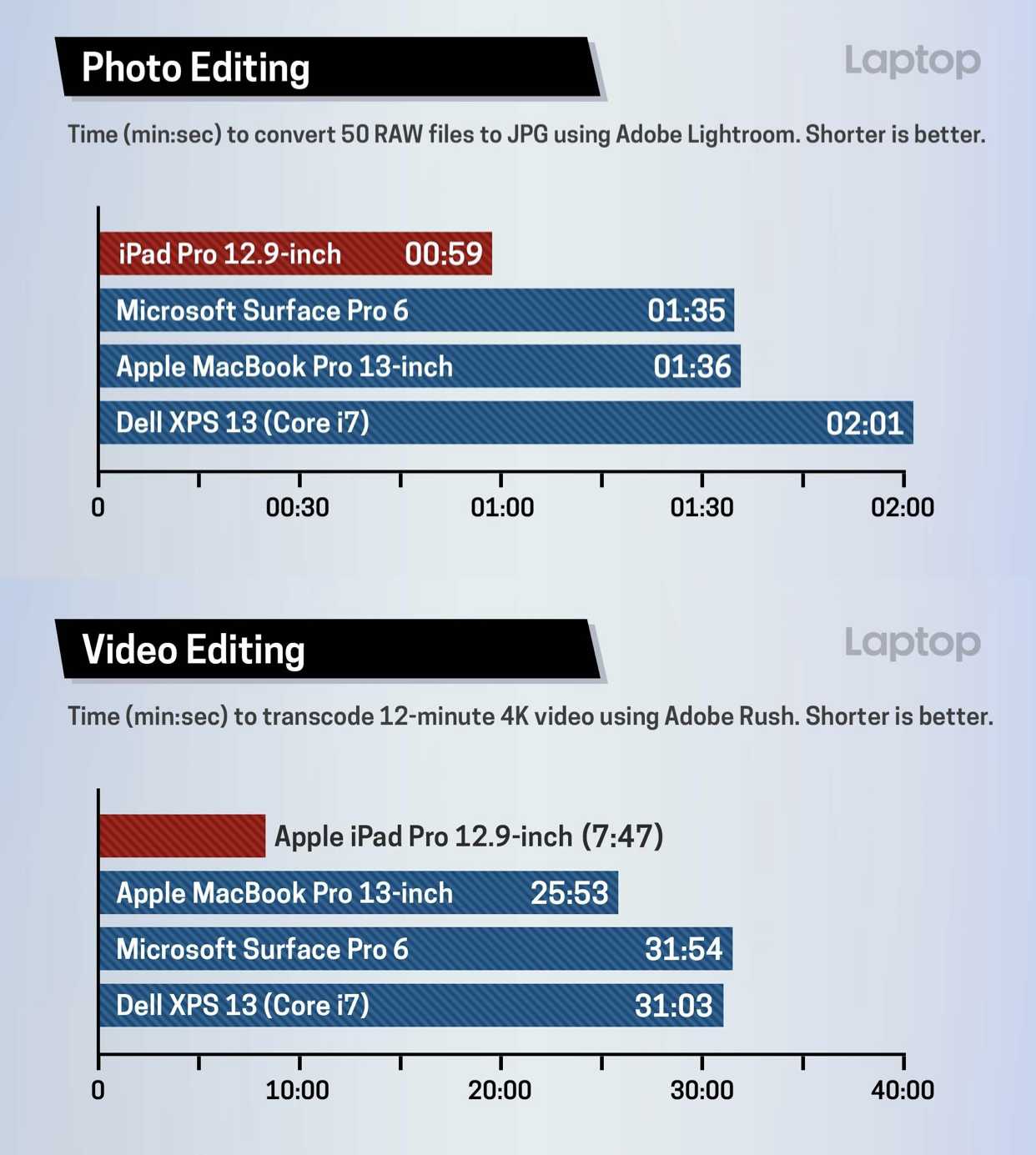 Как и раньше, Apple утверждает, что Apple A12z даст фору многим процессорам современных ноутбуков. Собственно, сегодня компания позиционирует iPad Pro именно как альтернативу для ноутбука, которая особенно неплохо подходит для творческих задач.
